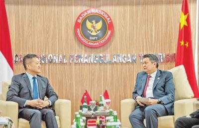 峇里之窗 陆慷大使拜会印尼国家反恐局里戈局长 By user - 2023 年 8 月 10 日 0 3 【本报讯】据来自中国驻印尼使馆消息:8月7日,陆慷大使拜会印尼国家反恐局里戈局长。双方一致同意,中印尼要加强在反恐和去极端化领域的合作。陆慷大使表示,中方坚定支持印尼担任今年东盟轮值主席国,支持印尼办好东亚合作领导人系列会议,愿同印尼方加强配合,确保会议取得圆满成功。 里戈局长表示,印尼方高度重视中国在国际事务中的积极作用及两国广泛领域的友好关系。印尼国家反恐局愿同中方开展更紧密的合作,共同促进世界和平、稳定、发展。