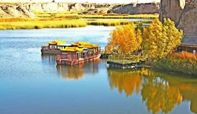 大漠花海、五彩湿地、晚霞普照、长河落日,秋色渐上,更让黄沙古渡透露出别样的味道。