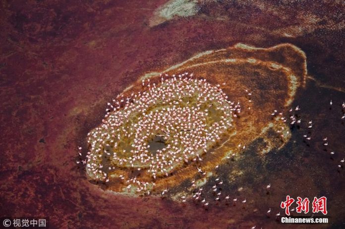 美好生活編輯精選 非洲千余只火烈鸟集结 高空俯拍似“恶魔之眼” By modianews - 2018 年 6 月 26 日 0 123 6月26日消息,近日在非洲肯尼亚和坦桑尼亚边界,53岁的美国业余摄影师Hao Jiang镜头下在纳特隆湖聚集的火烈鸟组成了一只“恶魔的眼睛”。 该照片拍摄于盘旋在1500英尺(约合450米)高空的直升机上,从那里俯瞰千余只火烈鸟好似一只眼睛的虹膜与瞳孔。 非洲千余只火烈鸟集结,高空俯拍似“恶魔之眼”。 (来源:视觉中国 中新网)
