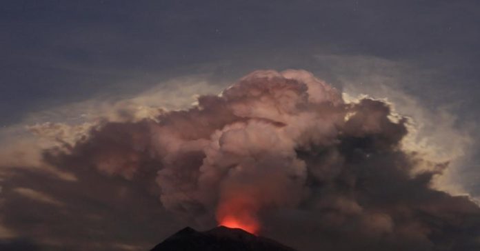 阿贡火山位于印尼旅游胜地巴厘岛东北部,海拔超过3000米,是印尼129座活火山之一。去年11月,阿贡火山曾剧烈喷发,导致伍拉莱国际机场关闭,约10万名当地居民被迫撤离。