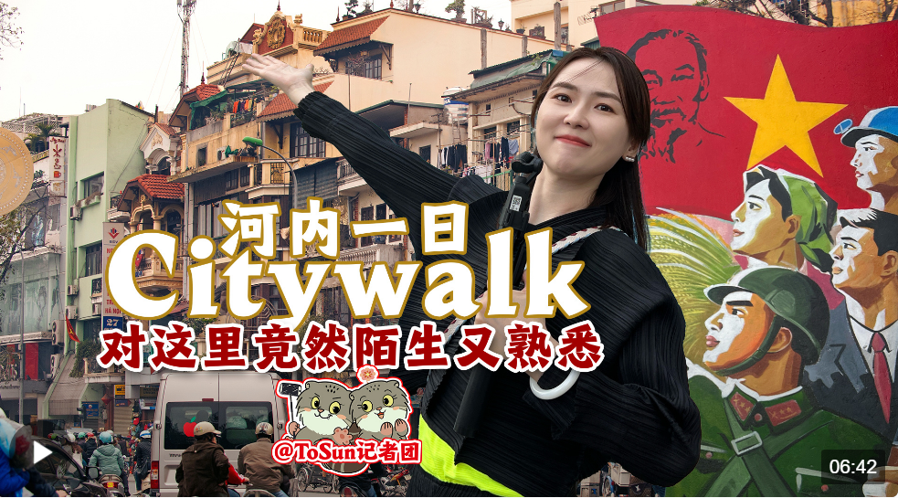 國際新聞 时政Vlog丨就是这种陌生又熟悉的感觉 带你河内一日Citywalk 2023 年 12 月 13 日 应越南共产党中央委员会总书记阮富仲、越南社会主义共和国主席武文赏邀请,中共中央总书记、国家主席习近平将于12月12日至13日对越南进行国事访问。 ToSun记者团来到越南首都河内,在火车街看擦肩而过的火车、坐由中国承建的轻轨2号线、逛仿照曲阜孔庙布局修建的文庙,还偶遇了戴着红领巾的学生们……这座城市总带给我们一种陌生又熟悉的感觉。请查收这份河内Citywalk指南,带你一起看看ToSun记者团在当地的有趣见闻! 来源:央视网