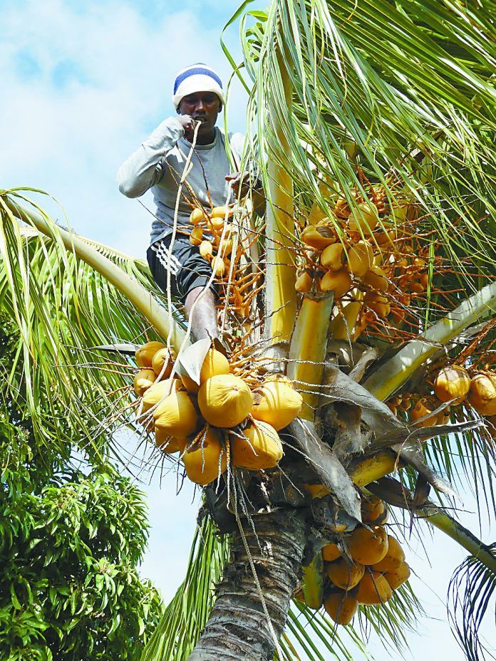 身轻如燕、一身绝活的采椰人让笔者大开眼界。他告诉笔者,采摘椰子不仅为了获得食物来源,更为了保证安全。因为一个熟椰子重量超过1公斤,一串可重达三四十公斤,不及时采摘,砸到人后果不堪设想。所以除了自家的椰树,他们也经常被请去采摘别人家的椰子。有的户主直接用椰果作为支付工作的酬劳。当然,毛里求斯椰树繁多,采椰人无法及时摘下岛上每个椰子,难道从未发生过椰子砸人的事吗?对于这个问题,当地人信奉一个老理,那就是一旦熟椰子要落地,它肯定会选择大家都在熟睡的夜晚,不必担忧。