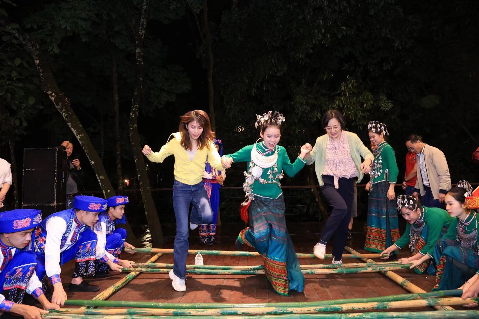 采风团体验黎族竹竿舞。海南省旅文厅供图