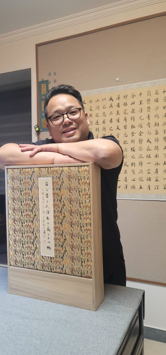 5月18日至5月22日,王登峰首次個展將於在杭州恆廬美術館舉行,呈現其近6年來作品之大成,亦為其沉浸墨海數十載探尋內在精神道路的呈現。約30萬字的作品,多為小楷、微楷。如8萬餘字《世說新語》,以烏金紙寫的《茶經》4條屏,以及多幅古紙寫就的小作品。王登峰尤愛古紙,珍藏的古紙多有數百年「高齡」,細小紙片也捨不得扔,燒邊成形,置於盒中,珍而重之。「能夠體會一種惜緣、惜福、惜光陰的狀態。然後在某個被觸動的時刻,像吃藥一樣,拿起來一片來寫。」此時王登峰身心鬆弛,左手持手機拍攝,右手研墨寫字,行雲流水。