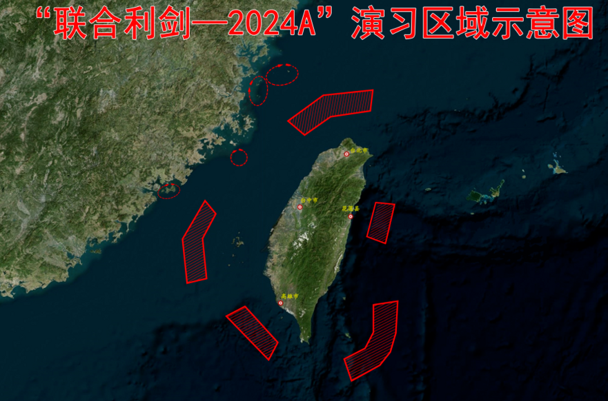 东部战区新闻发言人李熹海军大校表示,5月23日至24日,中国人民解放军东部战区组织战区陆军、海军、空军、火箭军等兵力,位台岛周边开展“联合利剑-2024A”演习,重点演练联合海空战备警巡、联合夺取战场综合控制权、联合精打要害目标等科目,舰机抵近台岛周边战巡,岛链内外一体联动,检验战区部队联合作战实战能力。