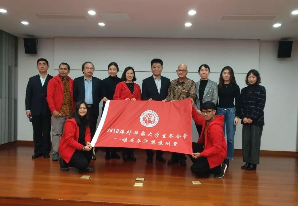 [本报讯]12月11日,2018海外华裔大学生“雅居乐”冬令营江苏苏州营在苏州大学怡远楼开营。来自印度尼西亚的19名华裔大学生相聚苏州,深入学习苏州人文历史,感受中华优秀传统文化魅力。中国华文教育基金会项目一部主任熊志远、省侨办文宣处处长郭冬梅、市侨办主任杨新,苏州大学港澳台办公室副主任高玮玮,海外教育学院院长夏骏、副院长袁晶,印尼茂物同一财经学院冬令营全体师生等出席开营仪式。