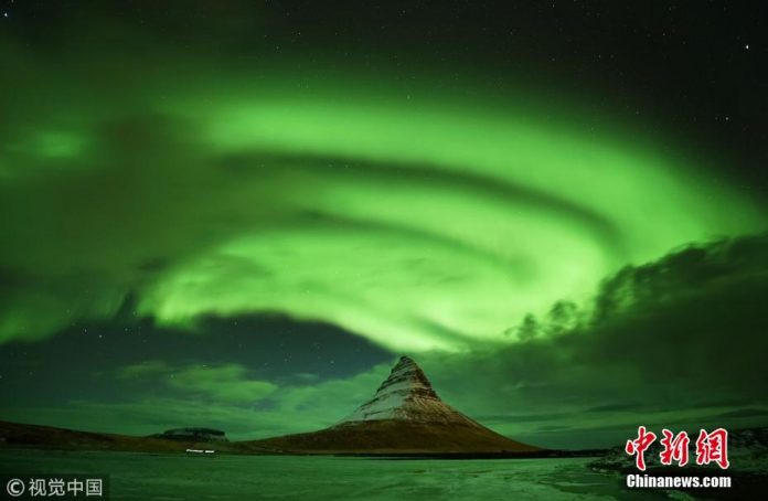 冰岛湖泊山峰极光交相辉映宛如梦境