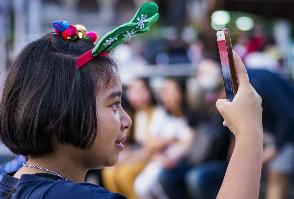 美好生活 泰国圣诞集市是什么样子?孩子盛装齐聚教堂 By guojiribao - 2018 年 12 月 25 日 2018年12月23日,泰国在尚塔布里举行的圣母无原罪大教堂圣诞集市上,一名戴着圣诞装饰品的女孩用她的智能手机拍照。 大教堂正在举行一年一度的圣诞节日。这座大教堂是泰国最大的天主教教堂,300多年前由当时定居在泰国暹罗的越南天主教徒建立。 平安夜当晚,泰国孩子穿圣诞礼服聚集教堂。