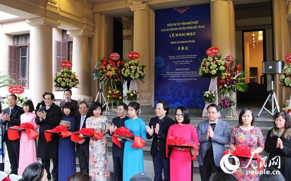 中越民族文化交流艺术作品展暨“中国广西北部湾民族文化艺术采风写生画展与非遗传承人艺术作品展”12月28日在位于首都河内的越南美术馆开幕,100幅中国传统绘画作品和14件非遗传承人艺术作品精彩亮相。展览期间,中越艺术家与非遗传承人还进行笔会等丰富多彩的交流活动。