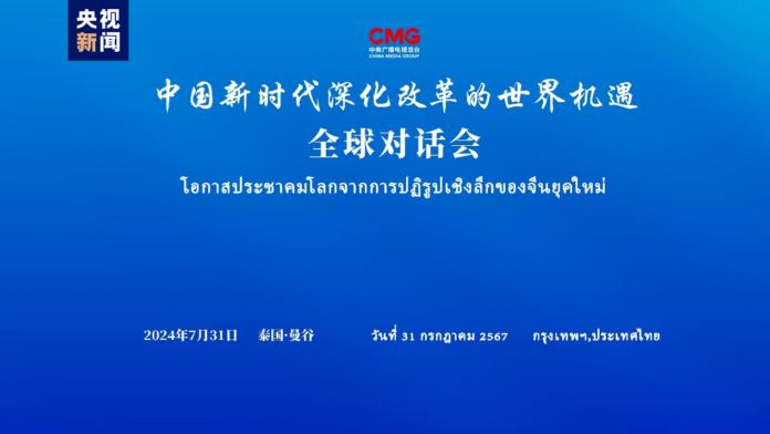 当地时间7月31日,由中国中央广播电视总台主办的“中国新时代深化改革的世界机遇”全球对话会泰国专场在曼谷成功举办。中宣部副部长、中央广播电视总台台长慎海雄作视频致辞。中国驻泰国大使韩志强、泰国泰中“一带一路”研究中心主任威伦·披差翁帕迪、泰国总商会及泰国贸易院副秘书长格莱新·翁素拉格莱、泰国高等教育科研与创新部地理信息与空间技术发展局副局长披·初席、泰中记者协会会长甘蓬·玛哈努库、泰国博仁大学校长达莉卡·拉塔毗帕出席对话会。泰国智库专家、媒体代表及泰国多所高校师生代表500余人参加活动。